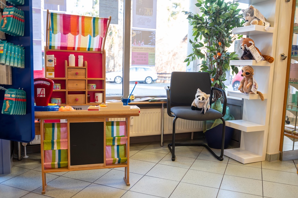 In unserem Verkaufsraum finden Ihre Kinder Platz zum Spielen, während Sie in Ruhe Ihre Apothekeneinkäufe erledigen sind die Kleinen bestens unterhalten!